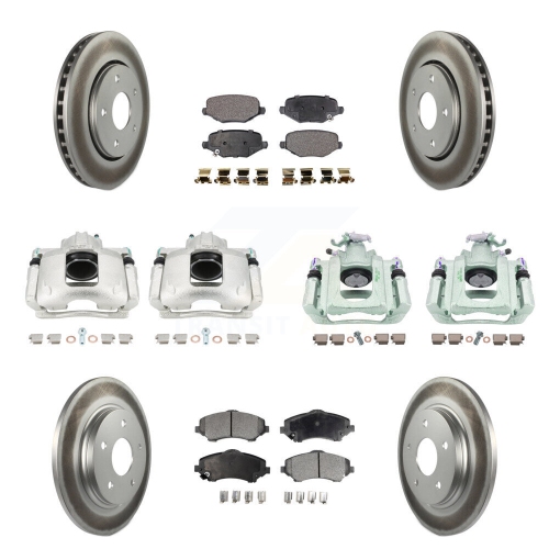 Front Rear Disc Brake Caliper Coated Rotors And Semi-Metallic Pad Kit (10Pc) For Ram C/V KCG-100889P