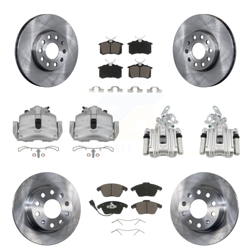 Front Rear Disc Brake Caliper Rotor & Ceramic Pad Kit (10Pc) For Volkswagen Jetta Beetle KC8-100998C