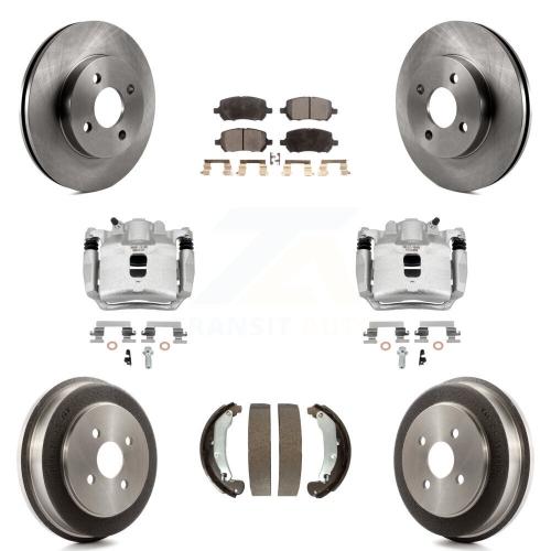 Front Rear Disc Brake Caliper Rotors Drum Ceramic Pad Kit (8Pc) For Saturn Ion Chevrolet KC8-100782T