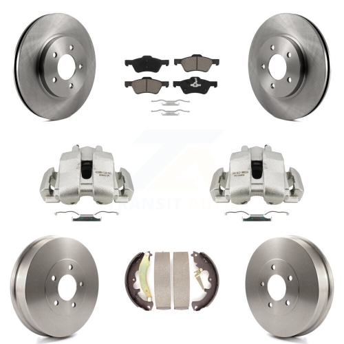 Front Rear Disc Brake Caliper Rotors Drum Ceramic Pads Kit (8Pc) For Ford Escape Mercury KC8-100782C