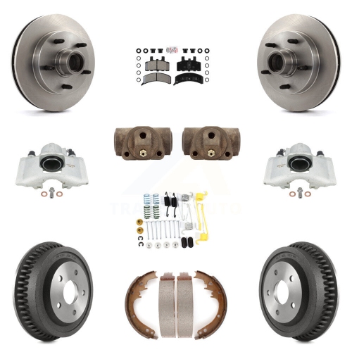 Front Rear Disc Brake Caliper Rotors Drum Semi-Metallic Pad Shoe Cylinder Kit (11Pc) For KC8-101430N