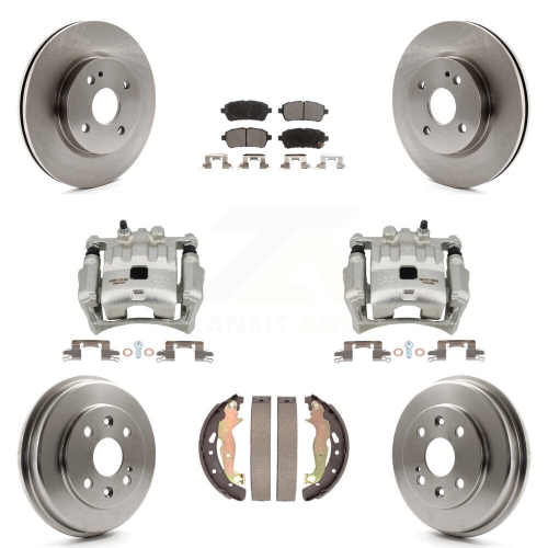Front Rear Disc Brake Caliper Rotors Drums Ceramic Pads Kit (8Pc) For 2011-2014 Mazda 2 KC8-100838T