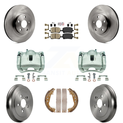Front Rear Disc Brake Caliper Rotors Drums Ceramic Pads Kit (8Pc) For Toyota Corolla KC8-101590N