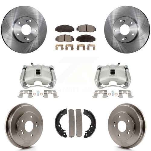 Front Rear Disc Brake Caliper Rotors Drums Semi-Metallic Pads Kit (8Pc) For Honda Civic KC8-100828P