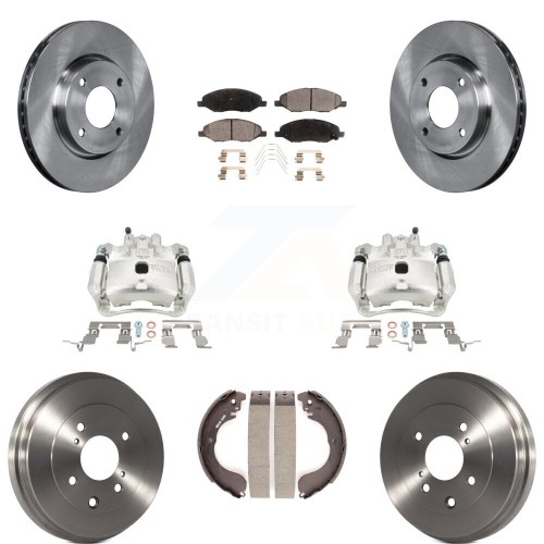 Front Rear Disc Brake Caliper Rotors Drums Semi-Metallic Pads Kit (8Pc) For Nissan Versa KC8-100869P