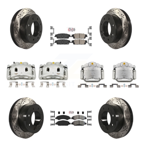 Front Rear Disc Brake Coated Caliper Drill Slotted Rotors Ameribrakes Pad Kit (10Pc) For KCD-100845N