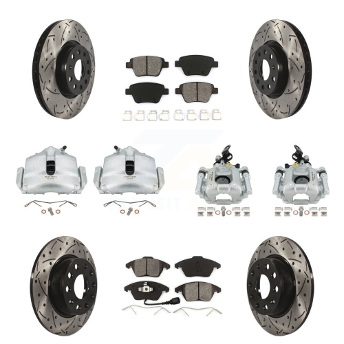 Front Rear Disc Brake Coated Caliper Drilled Slot Rotor Semi-Metallic Pad Kit (10Pc) For KCD-100239S