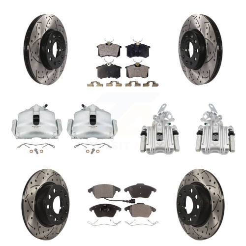 Front Rear Disc Brake Coated Caliper Drilled Slot Rotor Semi-Metallic Pad Kit (10Pc) For KCD-100247P