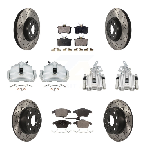 Front Rear Disc Brake Coated Caliper Drilled Slot Rotor Semi-Metallic Pad Kit (10Pc) For KCD-100250P