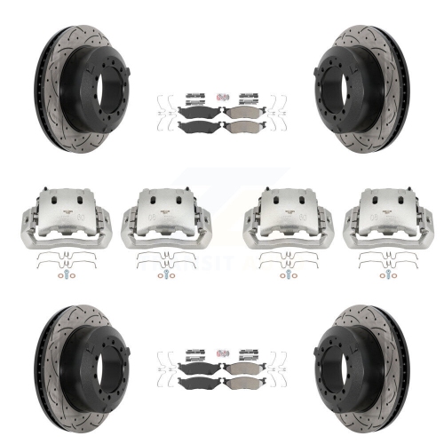 Front Rear Disc Brake Coated Caliper Drilled Slot Rotor Semi-Metallic Pad Kit (10Pc) For KCD-100778N