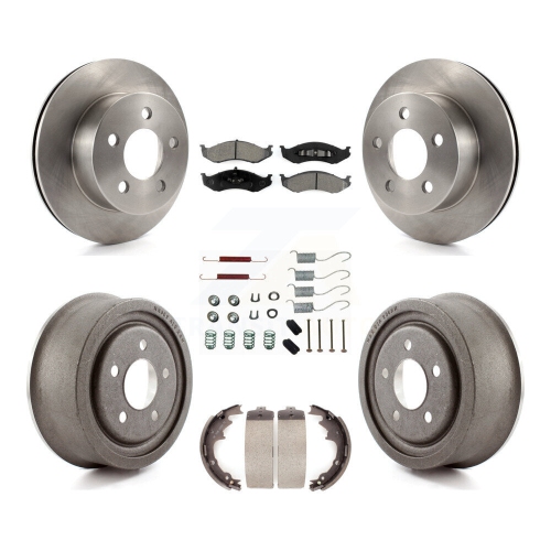 Front Rear Disc Brake Rotors Semi-Metallic Pads And Drum Kit (7Pc) For Jeep Wrangler TJ K8S-102063