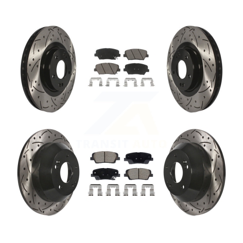 Front Rear Drill Slot Brake Rotors Ceramic Pad Kit For Hyundai Santa Fe Sport Kia Sorento KDC-101064