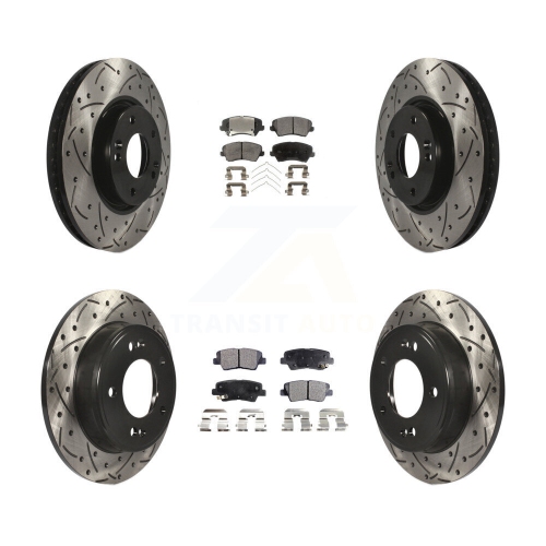 Front Rear Drilled Slot Disc Brake Rotor Semi-Metallic Pad Kit For 2017 Kia Forte Koup SX KDF-100306