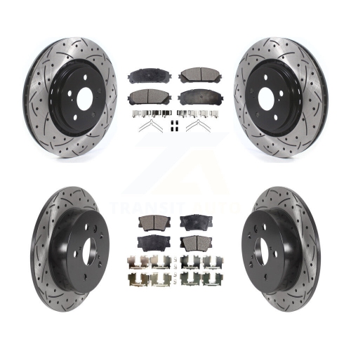 Front Rear Drilled Slot Disc Brake Rotors Semi-Metallic Pad Kit For 2022 Toyota Camry TRD KDF-101099