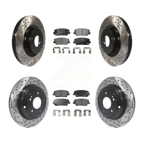 Front Rear Drilled Slot Disc Brake Rotors Semi-Metallic Pad Kit For Hyundai Genesis Coupe KDF-100352