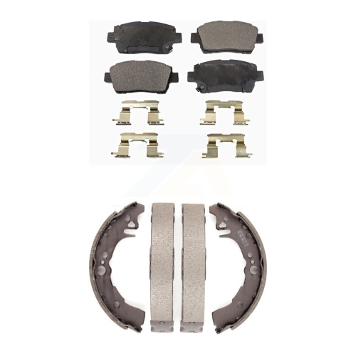 Front Rear Semi-Metallic Brake Pads And Drum Shoes Kit For 2001-2005 Toyota Echo KFN-100145