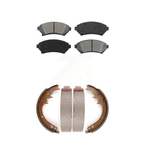 Front Rear Semi-Metallic Brake Pads & Drum Shoe Kit For Cadillac DeVille Disc rear brakes KSN-100168