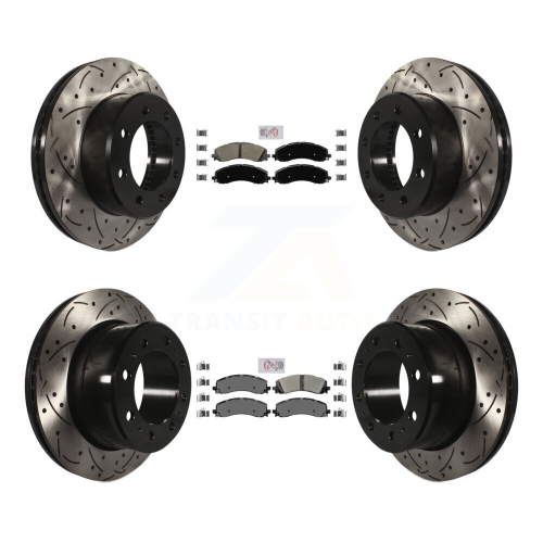 Front Rear Semi-Metallic Pad & Coated Drilled Slot Disc Brake Rotor Kit For Ram 2500 3500 KDA-101540