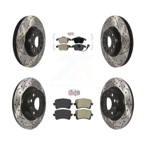 Front Rear Semi-Metallic Pad & Drilled Slot Brake Rotor Kit For Volkswagen Tiguan Audi Q3 KDA-101405