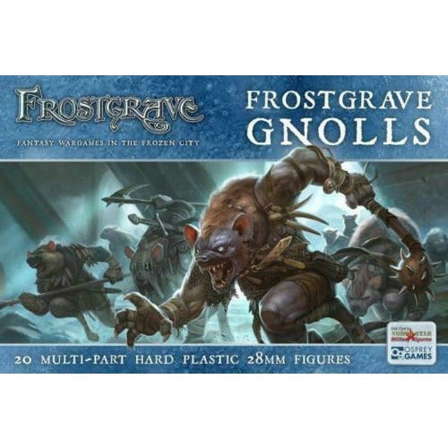 The Frostgrave Gnolls plastic box set contains enough parts to make 20 different figures. There are multiple heads, arms, weapons and accoutrements per frame, no two warbands will ever be the same.Gnolls feature in Into The Breeding Pits as opponents in the scenarios and as random encounters. They should also be used as the soldiers for W...