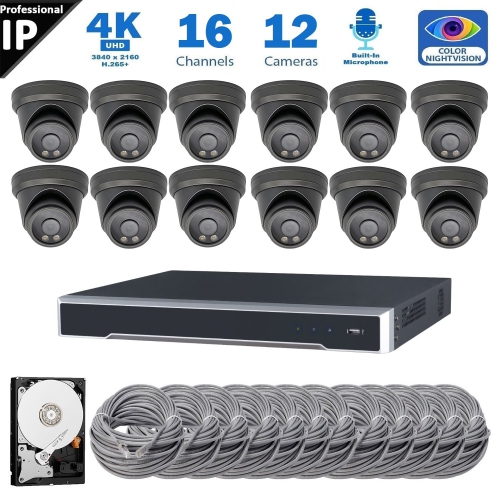 Full Color Night Vision 4K 8MP Wired Audio Security Camera System, 12 Camera Surveillance Kit Outdoor DIY Audio 4TB HDD Included for Home Business Security Camera System