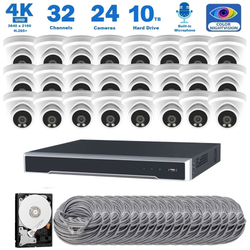Full Color Night Vision 4K 8MP Wired Audio Security Camera System, 24 Camera Surveillance Kit Outdoor DIY Audio 10TB HDD Included for Home Business Security Camera System