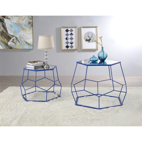 Furniture of America Boris Contemporary Metal Nesting Accent Table Set in Blue