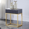 A beautifully decorative drawer front creates compelling texture and visual detail for this wood one-drawer side table. Complete with a antique blue and gold finish metal frame, the rectangular table is a sleek design that creates a perfect accompaniment to a recliner or loveseat. From the living room to your inviting den, this accent table creates concealed storage that's great for keeping your space clutter-free and looking its best.Features : <l...