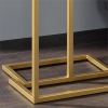 Looking to maximize space in a sophisticated, modern living space? This impressive contemporary black nesting table set is the answer as it features an intertwining design that delivers one tall and one short table that can be displayed in a variety of ways. The tables are crafted in steel metal with a warm, satiny gold finish and each features a thick MDF top with a faux marble finish PVC top that's both beautiful and durable.Features : Includ...
