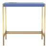 Mixing a gold finish base with a blue top finish, this contemporary metal and wood writing desk offers a compact footprint perfect for a bedroom or living room nook. The desktop features a built-in USB and electrical panel that create easy access to plug in your laptop or charge your phone while you work. Clean and sleek, this writing desk is a fun addition that perks up any decor.Features : Includes: One (1) Writing DeskStyle: Contemp...