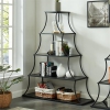 Embrace the intriguing, tapering profile that lends drama and bold style to this transitional multi level metal bookcase, available in a choice of sizes. Beautiful in an entry or living area, the bookcase features 5 mm black glass shelves with sand black powder coated framework to create a dramatic presentation. Graceful curves support shelves that grow sequentially wider from top to bottom to create a dynamic look in any room.Features : OPEN S...