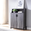 Minimalist inspired style and ample storage make the Liguari wood shoe cabinet a charming addition to any entryway. Constructed from sturdy MDF and Particle Board, the Liguari is showcased in a gorgeous, two-tone distressed gray and black finish. Two doors conceal four shelves with storage space for up to 12 pairs of shoes.Features : Includes: One (1) Shoe CabinetStyle: ContemporaryFinish: Distressed GrayMaterials: MD...