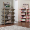 Open and eye-catching, this contemporary antique gray wood five-tier bookcase doubles as a room divider to define an open concept living space. It's a bold design that combines a rich gold finish frame with colored shelves. Shelves are stacked one on top of another to create a vertical display space with an open back, adding exquisite versatility. Add baskets for storage or create a lovely display of personal treasures.Features : OPEN SPACE CON...