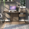 Make your industrial or urban style home office dream come to life with this wood writing desk in rustic oak. A built-in charging station offers two outlets and two USB plugs for all your workplace needs meanwhile a floating drawer on smooth and silent ball-bearing glides seconds as a shelf. The matte black steel frame is accented by a rustic finish.Features : Includes: One (1) Writing DeskStyle: IndustrialFinish: Matte Black,...