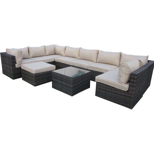 This 10 pieces patio PE wicker rattan corner sofa set is the best choice for you. It's great furniture to decorate your garden. The classic yet simple design made it look great in any setting. This set is a beat useful furniture for you. It has comfortable sofas you can sit on it to enjoy your leisure time. The space-saving design makes your garden delicate.