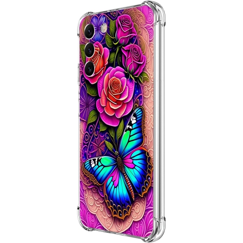 Galaxy S23 FE Case,Blue Butterfly Flowers Rose Drop Protection Shockproof Case TPU Full Body Protective