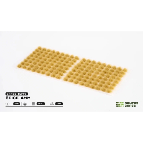 Beige 4mm Small TuftsSmall Tufts - Wild - (4mm x 70)These tufts are suitable for various scales and types of terrain, making them versatile for different modeling projects. Whether you are working on historical, fantasy, or modern settings, these tufts can add a touch of authentici...