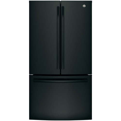 Style and innovation meld seamlessly together to create the GE 36" French door refrigerator. It features a 26.7 cu. ft. capacity, energy-efficient technology, and perfectly placed drawers and shelves for optimal functionality. Enjoy the freshest filtered ice and water and find just what you're looking for inside with the bright LED-lit interiors.GE 36" 26.7 Cu. Ft. French Door Refrigerator (GNE27JGMBB) - Black - Open Box - Scratch & Dent