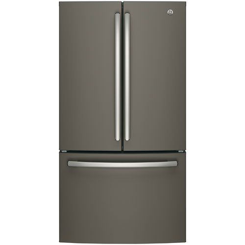 Style and innovation meld seamlessly together to create the GE 36" French door refrigerator. It features a 26.7 cu. ft. capacity, energy-efficient technology, and perfectly placed drawers and shelves for optimal functionality. Enjoy the freshest filtered ice and water and find just what you're looking for inside with the bright LED-lit interiors.GE 36" 26.7 Cu. Ft. French Door Refrigerator (GNE27JMMES) - Slate - Open Box - Perfect Condition