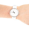 Bold and minimalist, this striking timepiece has a stainless steel case with a white leather strap. Understated yet speaks volumes.
