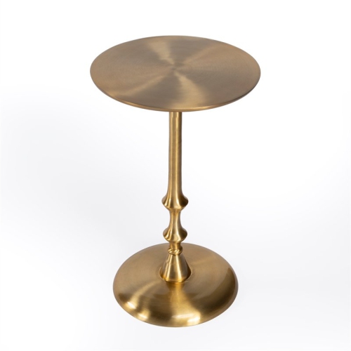 Crafted from aluminum, this shiny gold- toned table features an exquisitely turned base and pedestal. It's modern and minimalist style and small frame make this a versitile piece that can find itself in most rooms of your home.Features : ModernMetalAccent Tables