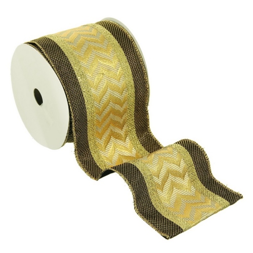 Gold and Brown Metallic Flame Chevron Wired Craft Christmas Ribbon 4" x 5 Yards