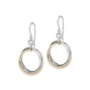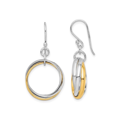 These affordable and fashionable multi circle style earrings create a cute casual pair of dangle earrings. Crafted from sleek sterling silver with yellow gold plating , these are the right earrings at the right price. These silver dangle earrings weigh 5.80 grams and are 1 1/5 inch in length with french wire backings.
