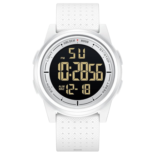 The GOLDEN HOUR Ultra-Thin Minimalist Sports Digital Watch features a sleek design with a wide-angle display, perfect for both men and women. Its waterproof construction and durable rubber strap make it ideal for active lifestyles. The ultra-thin profile ensures a comfortable fit, while the digital display offers clear, easy-to-read time and date information.