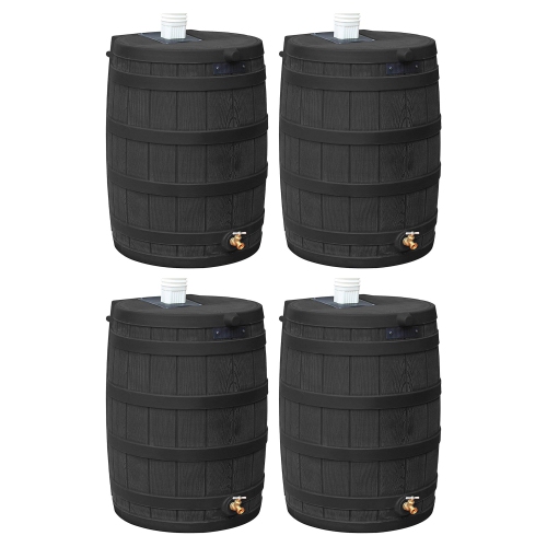 Good Ideas Rain Wizard 50 Gallon Plastic Barrel Water Collector, Black (4 Pack)
