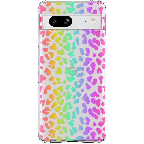 Google Pixel 7a Case, Women Rainbow Leopard Pattern Animal Print Design Transparent Soft TPU Protective Clear