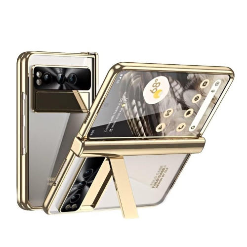 Google Pixel Fold Case, with Full Cover Hinge Protection Crystal Clear Plating Protective Phone Case, with Built-in Screen Protector & Kickstand for Google Pixel Fold (Gold)