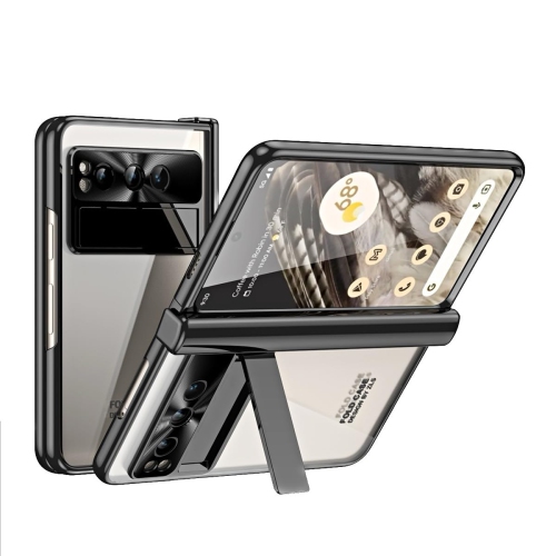 Google Pixel Fold Case, with Full Cover Hinge Protection Crystal Clear Plating Protective Phone Case, with Built-in Screen Protector & Kickstand for Google Pixel Fold