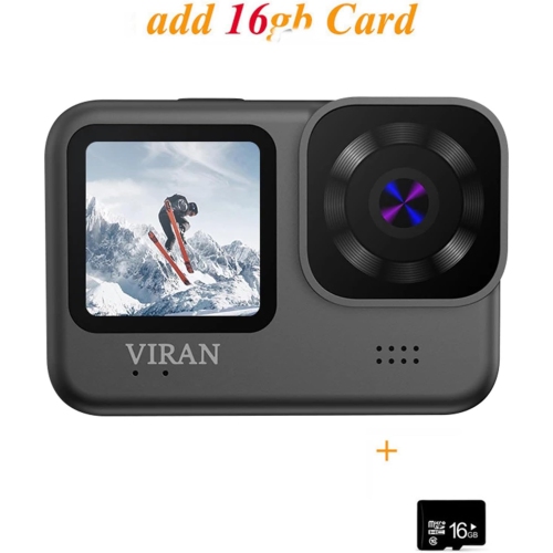 Gray Mini Camera Dual Color Screen Waterproof Anti-Shake Sports Camera with 16GB Card - Auto Cycle, Waterproof, Built-in Microphone