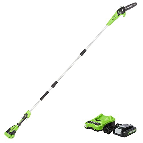 Greenworks 24V 8-Inch Cordless Pole Saw with 2Ah Battery and Charger Included